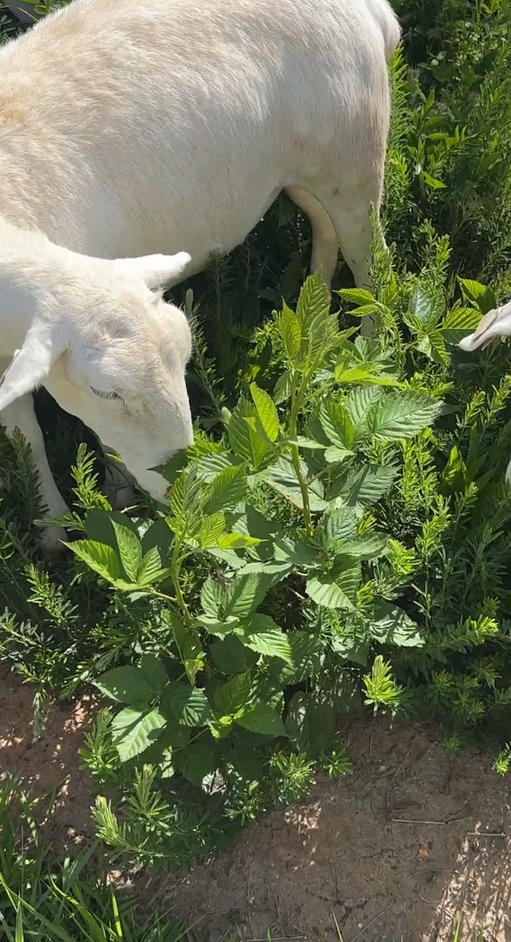 In the video below, this ewe is stripping lespedeza. It’s an invasive plant that cattle typically won’t touch —but the ewes are bloodhounds for it and lespedeza is a natural dewormer for sheep. Eat up, girl.